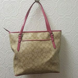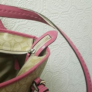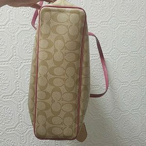 Pink and tan signature coach tote. Handle is peeling just a tad, see picture. Other than that it's on great shape