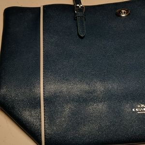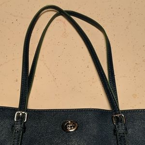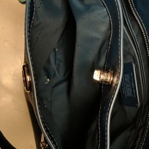 Authentic Blue,/Green tote zippered inside pocket in large compartment and small compartment that fastens shut. Like new only used a couple of times.