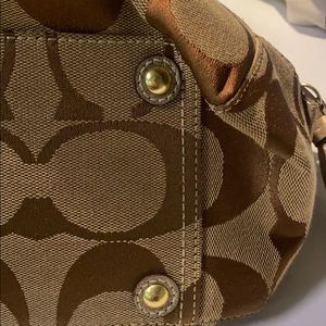 Beautiful and well-maintained coach tote. A few minor pen stains on the inside and slight stain on bottom-pic included. Other than that I’m good condition!