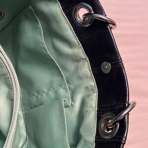 Black pebbled leather tote bag. Holds quite a bit! In very good condition inside and out. Please see pictures for full description.