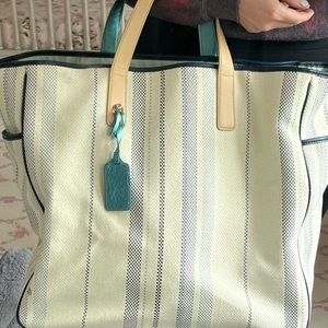 Beautiful stripe extra large coach tote bag. Awesome bag for traveling or for a beach bag. Can fit so much in it. In excellent condition, super clean except the one spot on the side in the picture and a small area