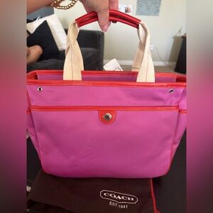 Coach twl Hampton garden tote purplish pink red nwt dust bag included