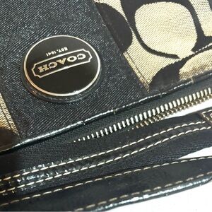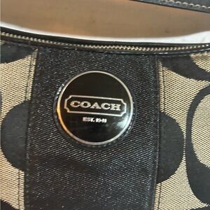 Coach vintage CC signature print canvas/ leather crossbody handbag 2 pockets at interior wall 1 zip closure fabric logo at front hangtag at side lining minor stains exterior edges have some cracks stains & creasing hight 6.5” wide 11” depth 2.5” strap drop 7.5” shoulder strap 21”The dimensions are based on approximately measurements before placing an order please check take a moment to view all photos using feature for a closer look