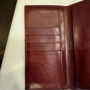 This beautiful wallet is in terrific condition. It has compartment for cash, credit cards & ID. Thin wallet. See photos for measurements