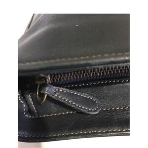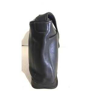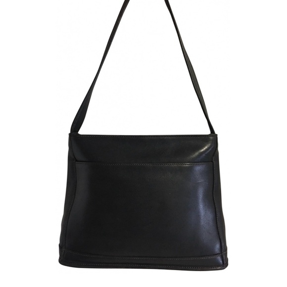 Coach vintage black leather shoulder handbag main compartment 1 zip pocket closure at interior wall raw suede lining open pocket at front lining minor stains exterior minor scratches hight 9” wide 12” depth 3.5” strap drop 12”The dimensions are based on approximately measurements before placing an order please check take a moment to view all photos using feature for a closer look