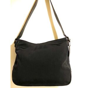 Coach vintage black nylon shoulder handbag with silver tone hardware with leather strap & trim logo at front fabric lining hight 10.5” 12” depth 3”The dimensions are based on approximately measurements before placing an order please check take a moment to view all photos using feature for a closer look