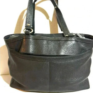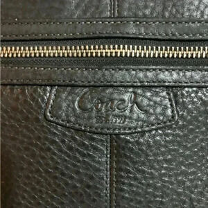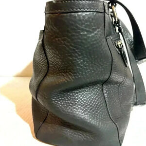 Coach vintage black pebbled leather tote bag with silver tone hardware main compartment 3 pockets at interior wall 1 zip closure fabric lining zip pocket closure at front open pocket at back minor cracks at strap exterior minor marks hight 11” wide 18.5” depth 4.5” strap drop 11”The dimensions are based on approximately measurements before placing an order please check take a moment to view all photos using feature for a closer look The dimensions are based on approximately measurements before placing an order please check take a moment to view all photos using feature for a closer look