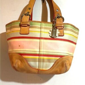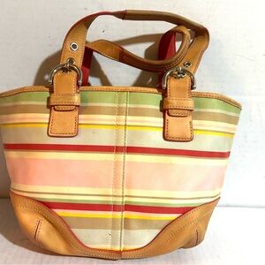 Coach vintage nylon satchel handbag with silver tone hardware main compartment 3 pockets at interior wall 1 zip closure fabric lining hangtag at front leather strap & trim ex have marks stains discoloration hight 8.5” wide 11.5” wide 12” depth 4.5” strap drop 6” The dimensions are based on approximately measurements before placing an order please check take a moment to view all photos using feature for a closer look