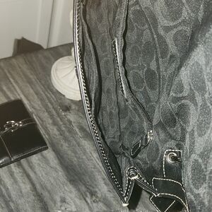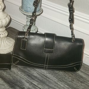 gorgeous vintage black with shiny silver hardware shoulder bag with wallet. no call outs. 20yrs old