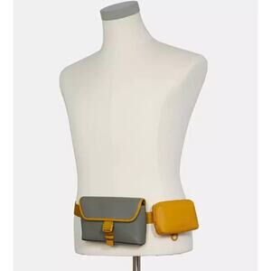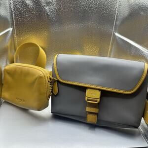 Coach waist crossbody bag leather Yellow/Grey C5603