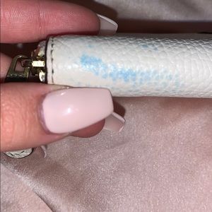 This is a beautiful leather coach wallet! Lightly used and it does have a tiny blue stain on it. I’ve used it for a few months but someone else could for sure get some more love out of it!