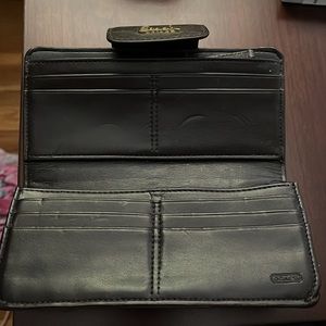 Good used condition coach wallet. Brown leather. Well taken care of. Gold snap to close.