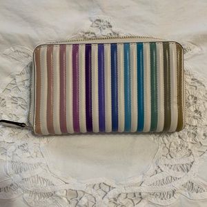 Reposhing this item I purchased from @mikie_thrift502. Beautiful but never used. Matching bag available. Small patch on bottom front far left stripe missing (see photo).