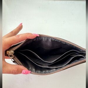Beautiful monogram wallet. Spacious with many compartments inside. Small round zipper.