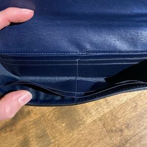 Dark blue coach wallet. Good condition. A little wear on the inside flap