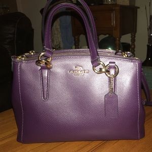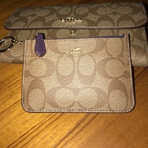 Purple coach purse, has 2 compartments that zips the middle doesn't you can still secure that part tho. Wallet it holds 18 cards, money, ID, card or change purse.