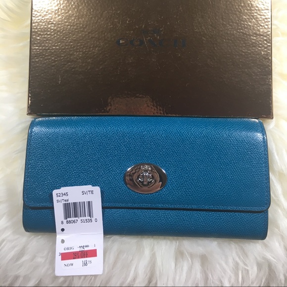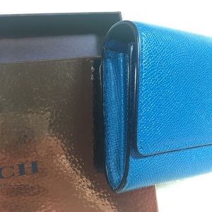 Used. Wallet is in a beautiful blue Teal color. One hair like scratch on front. Come from smoke and pet free home. Please ask if you have any question. Sale final. Happy shopping.