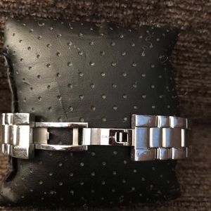 All stainless steel link and water resistant. No scratches on the glass and diamonds all around inside.