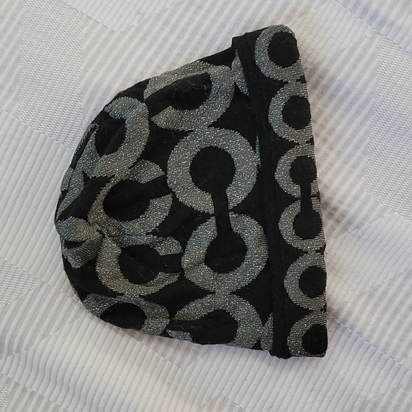 Adorable coach black and silver skull cap hat for winter. Merino wool and acetate. Dry clean only. Worn only a handful of times, black and silver are not my colors anymore.