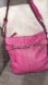 Stylish fuchsia leather bag with chain detail. Perfect for adding a pop of color.