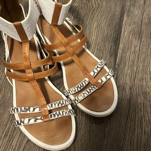 Coach women’s Nillie Tan and White Sandals with Braided Straps size 7