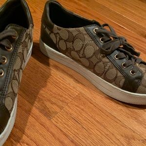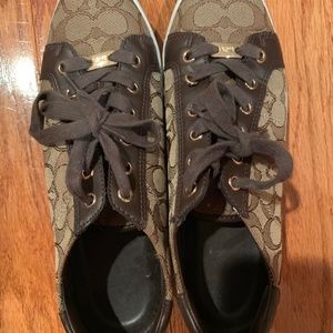 This pair of shoes are used yet in great condition, they are a size 9 and very comfortable. only a few scuff marks on the bottom of the shoe.