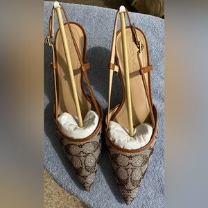 Coach crystal signature jacquard slingback pumps. Size 10 tan & brown. NWOB