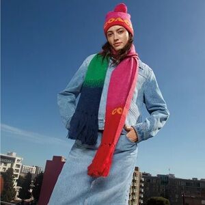 Lend a pop of color to any look with this vibrant knit scarf from COACH designed with soft fringe trim and a logo print.