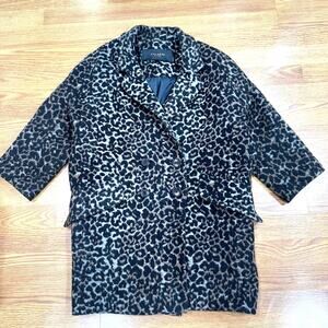 A chic, timeless piece by Coach, this double-breasted coat is made from a luxurious wool blend with a bold leopard print. The “Mad Men”-inspired oversized silhouette offers a retro yet modern vibe.