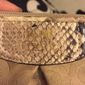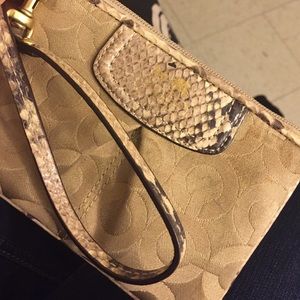Beige Coach wristlet with snake skin print detailing. Never used, complete with packaging.