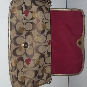 Gold color Coach wristlet with compartments for cards. Has been used but in good condition.