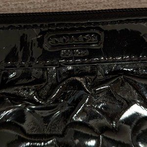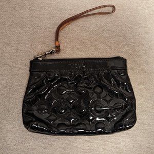Coach wristlet patent (vegan) leather. Approximate size: 6 inches (length), 4.5 inches (width), .5 inch (depth)