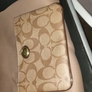 Coach wristlet in good condition the strap have some flaws but other than that is in good condition refer to pictures the strap have some coming apart