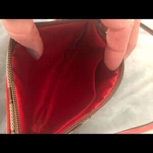 Never been used but adorable clutch with two large compartments and one card slot inside.