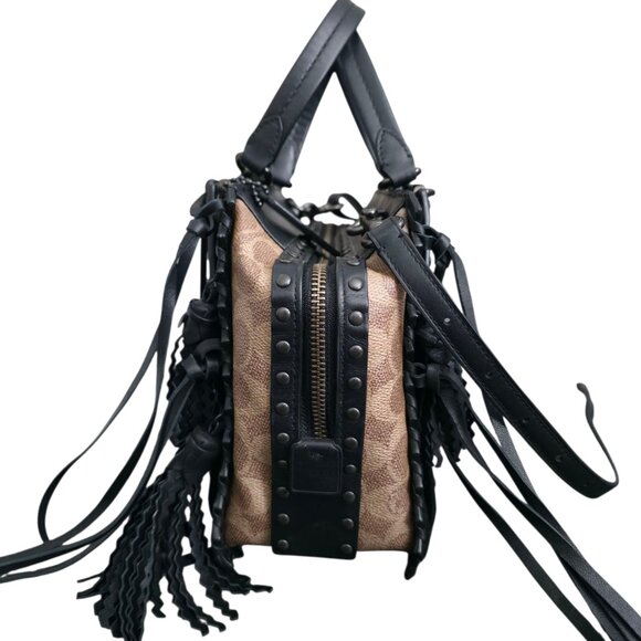 coach chelsea champlain dreamer tattoo black fringe shoulder bag leather crossbody purse rare collab limited edition collectible signature canvas designer edgy chic streetwear quiet luxury
