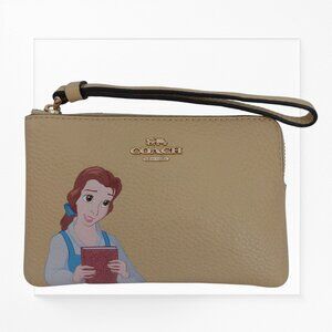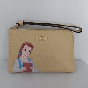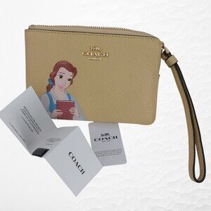 Disney X Coach Belle Leather Corner Zip Wristlet Wallet Vanilla Cream C3363