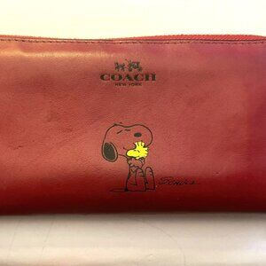 Coach x Peanuts Snoopy & Woodstock Red Zip-Around Leather Wallet - *Worn*