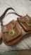 Stylish brown leather shoulder bag with gold accents. Perfect for everyday use. Has some discoloration in the lining of the bag I think that is just from the leather on the outside some bleeding in pretty good condition other than that I don't know when this satchel came out and I don't know the official name of it and I don't know if it's age but it is a nice bag