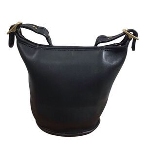 Coach 9019 Legacy Black Maggie Duffle Crossbody Bag Vintage Natural Full Grain Leather