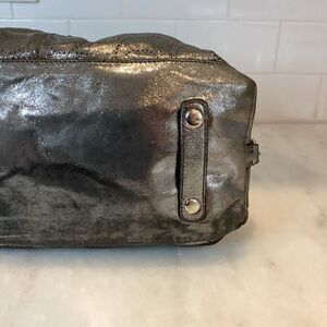 Coach Ashley Perforated Metallic Silver Leather Satchel Handbag RARE