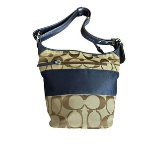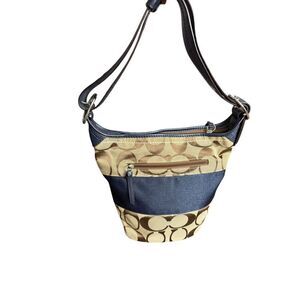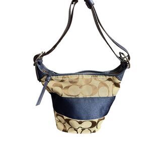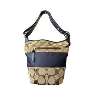 Coach Authenticated Signature Blue Stripe Buckle Bag / Blue Leather Adjustable H