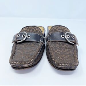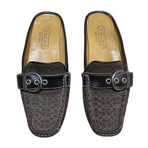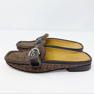 Coach Backless Loafers Erika Square Toe Monogrammed Brown Mule Size 5