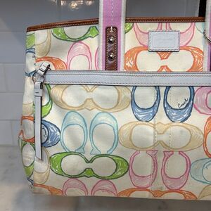 Coach Bag Purse Handbag Hampton Scribble Signature Logo Multicolor Tote Bag