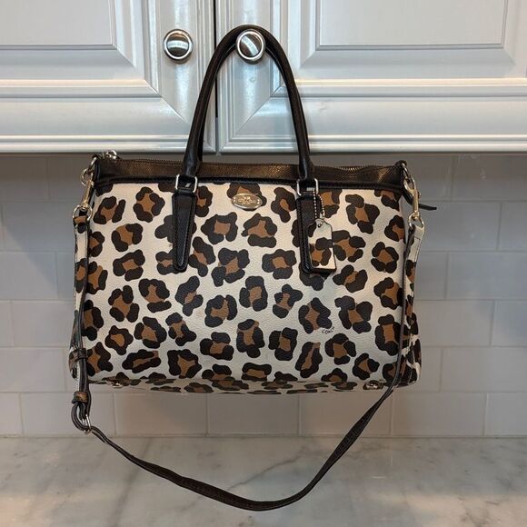 Coach Bag Purse Handbag Leather Morgan Ocelot Leopard Print Convertible Satchel