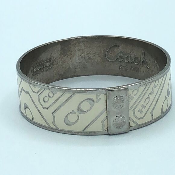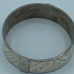 GUC Jacquard Design 3/4" wide Cream and Silver Bangle bracelet