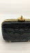 Coach black patent leather raised Signature C embossed hard clamshell style clutch with gold tone hardware and turn lock too closure. Has four feet in bottom so it stands straight up. This clutch originally came with a removable long ball chain style strap and a gold tone hangtag. Those are missing. I will include a gold tone chain strap that is unbranded that I have so that you could wear this as a shoulder bag if you prefer, but you might want to invest in a slightly nicer strap for this gorgeous bag. This is such a gorgeous evening bag and is very small and compact for just the essentials. Turnlock is fully functional and how the clutch opens. Measurements are approximately 6” x 3 3/4”x 1 3/4”. In good used condition. Some minor marks to hardware which may be able to be polished off. I just did not want to risk taking any of the gold finish off by polish I no too hard. Such a great dressy formal piece for the Coach collector! And Coach so rarely makes dressier pieces so this is a rare find!
