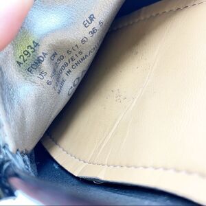 A few scuffs as shown are all the evidence that these have been worn. In great shape with a silver Coach logo emblem. Nubby rubber sole. Slip on ease and comfort. Please see photos for additional details.