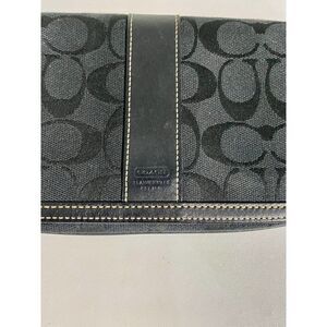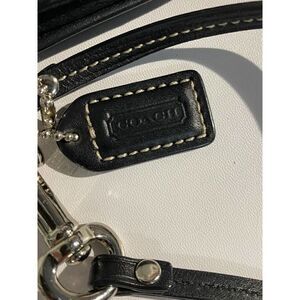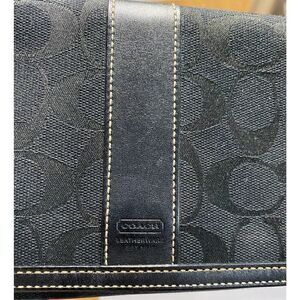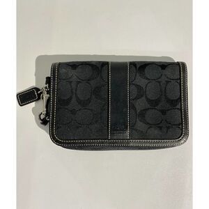 This Coach wristlet features a black color, the classic Coach C monogrammed pattern, an authentic Coach leather tag and a snap closure.