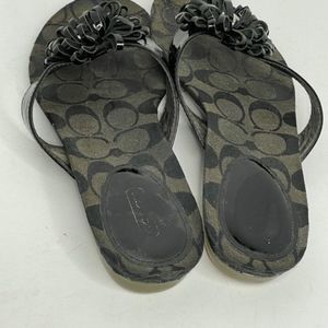 Coach black and tan suki thong sandals in size 8. The Style number is A8382.