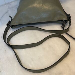 Authentic Coach Bleecker Grommets Mini Duffel Bag in EUC. Stunning grommet studded duffle bag crafted in smooth Olive colored leather with a zippered closure from Coach. The bag has a long strap that adjusts for shoulder or crossbody wear. Great size for a crossbody or day out! Zip-top closure, black fabric lining. Gunmetal colored hardware and grommets. Polished grommets make a statement on this darling mini, transforming it with a chic downtown edge. Long strap with 23 1/2" drop for shoulder or crossbody wear. Approximate measurements - 6 1/4" (L) x 8 3/4" (H) x 5" (W). Photos are the most accurate description of this highly sought after small bucket bag. This bag is a hot item!!